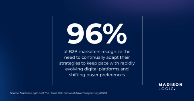 The B2B marketing and advertising landscape is in the midst of a seismic shift. Madison Logic’s new research with The Harris Poll shows that marketing decision-makers are embracing AI, expanding into new channels, and holding themselves accountable to performance-driven outcomes. These findings confirm what many of us already feel: the old playbook of broad reach and static impressions no longer works in a buyer-controlled world.
