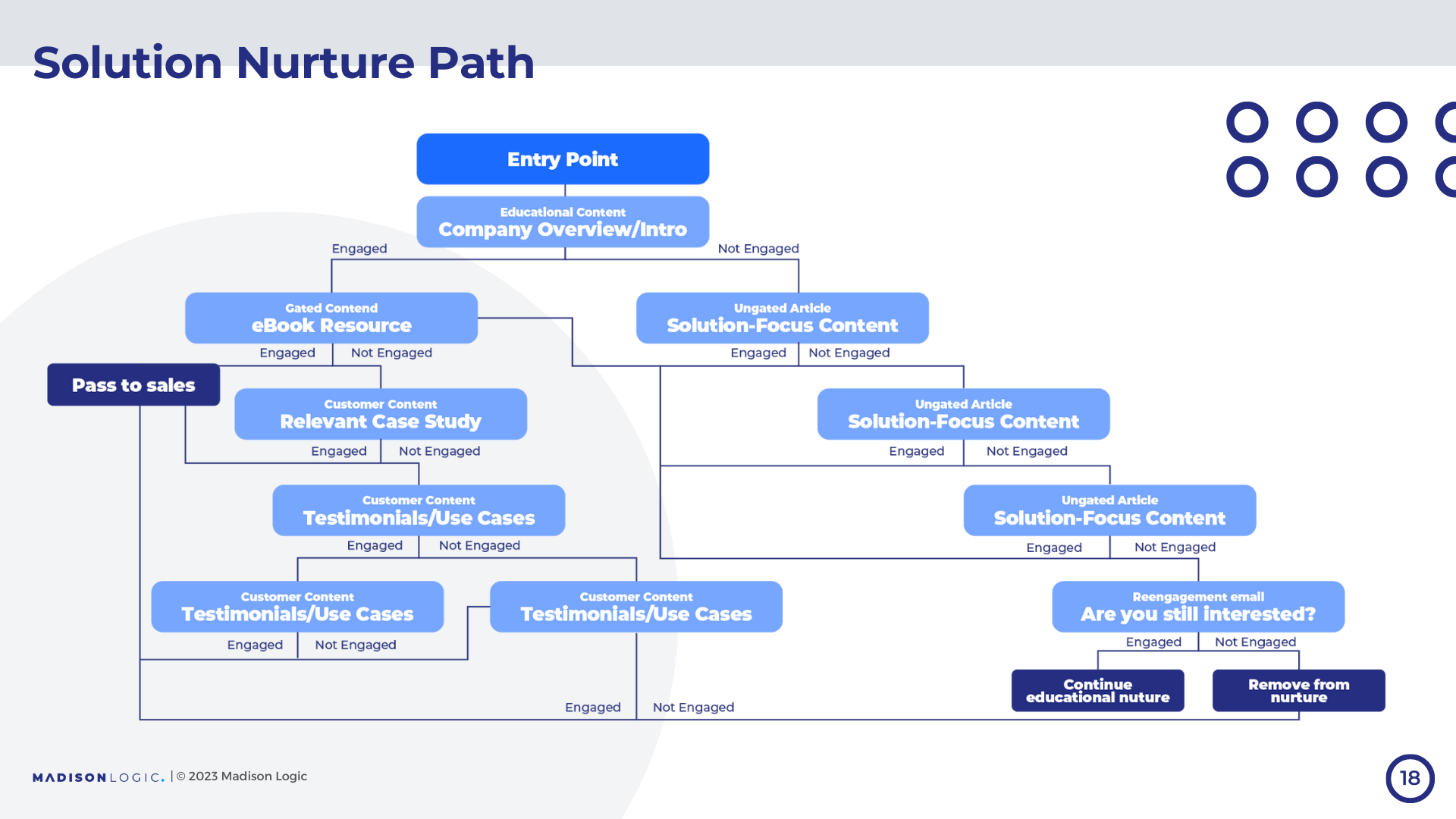 According to LinkedIn, at any given time, only 5% of B2B accounts are in-market for a product or solution. With the other 95% either not yet in-market or simply not ready to buy, account nurturing is an effective strategy to stay top-of-mind with potential buyers and drive them through the buyer’s journey. But nurturing in ABM differs from nurturing in other marketing strategies because it must be done in a multi-channel, full-funnel approach.